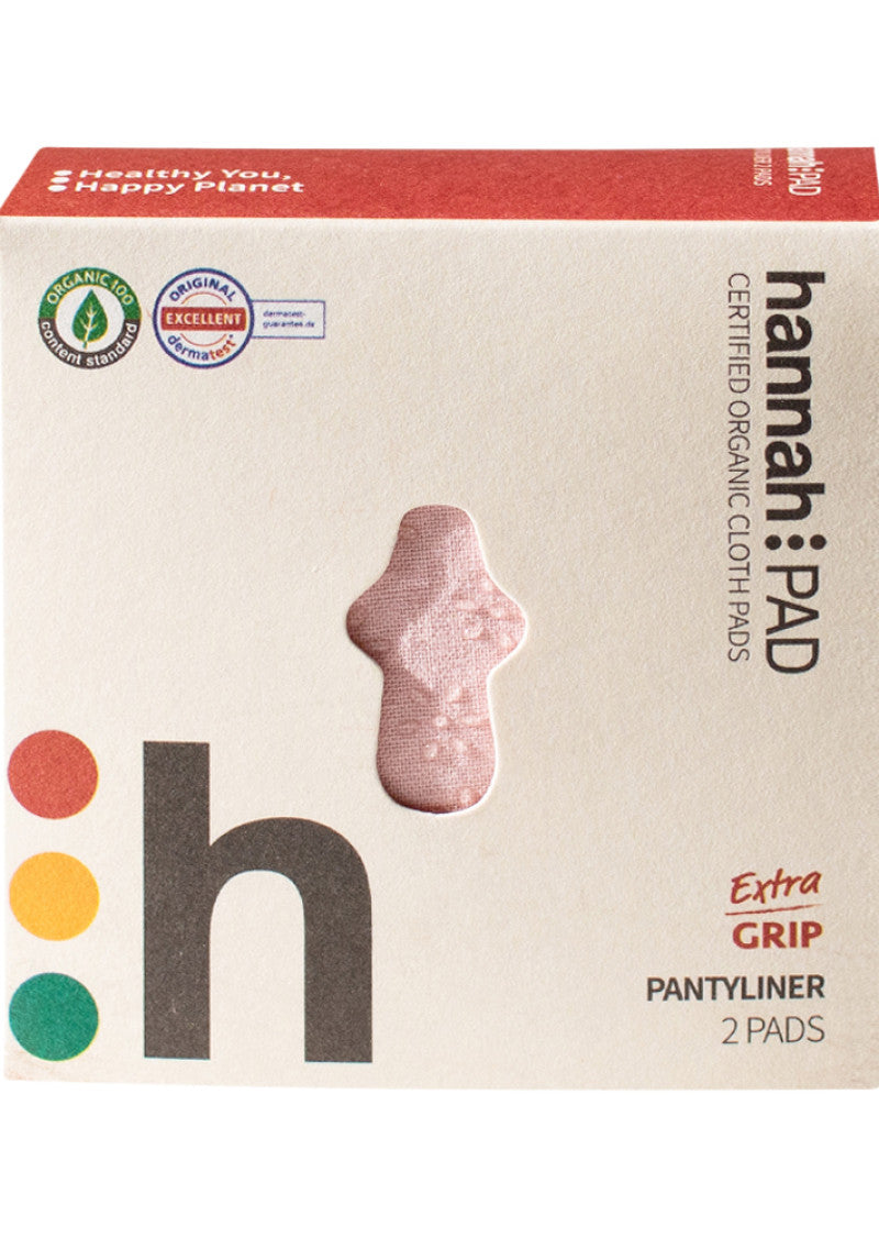 Hannah Pad Org Cotton Reusable Cloth Pad Pantyliner Extra Grip x 2 Pack