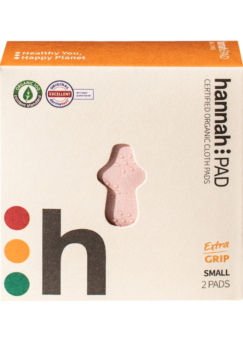 Hannah Pad Org Cotton Reusable Cloth Pad Small Extra Grip x 2 Pack